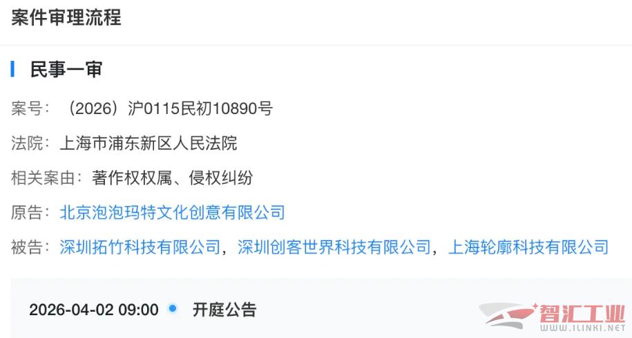天眼查信息顯示,深圳拓竹科技有限公司日前新增一起司法案件,原告為北京泡泡瑪特文化創(chuàng)意有限公司,被告包括深圳拓竹科技有限公司、深圳創(chuàng)客世界科技有限公司、上海輪廓科技有限公司,相關(guān)案由為著作權(quán)權(quán)屬、侵權(quán)糾紛。該案將于4月2日開庭。
